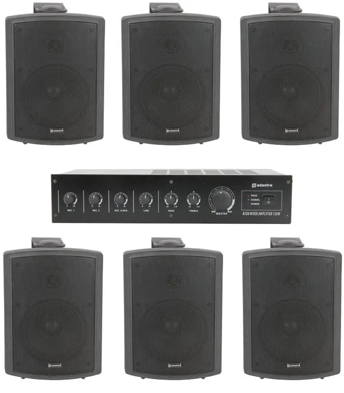 This easy to install complete 100v Line background music PA system ideal for bars restaurants waiting rooms etc... This sytem comes complete with a 4 channel 120W Mixer Amplifier and 6 x indooroutdoor wallmount speakers which are available in black and white. Total power output: 120W