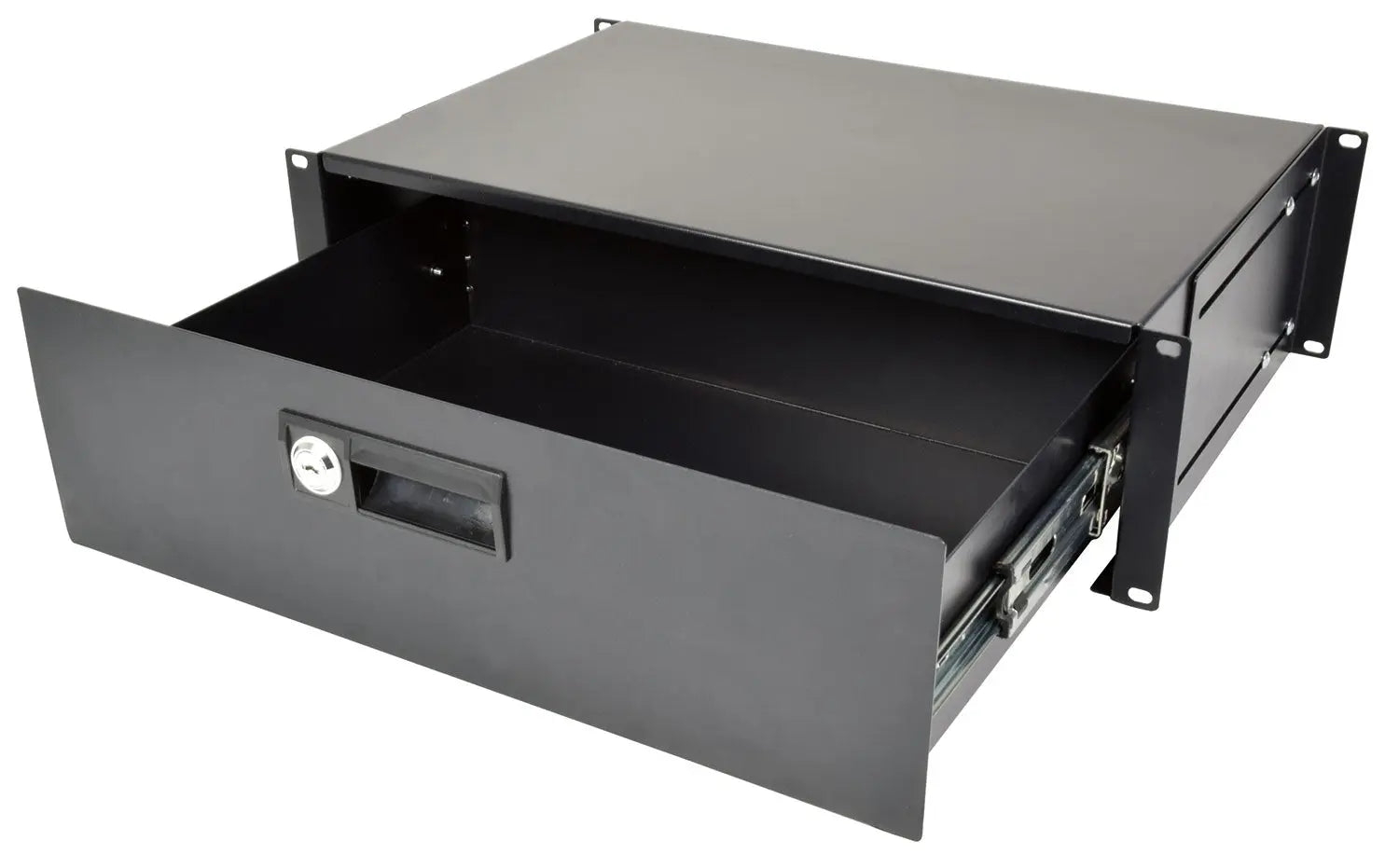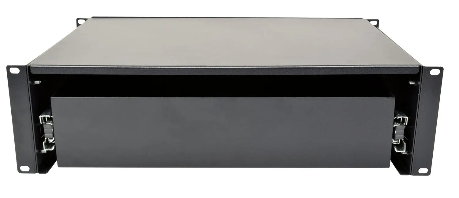 Steel drawer units for convenient storage of equipment and accessories in a 19" rack cabinet. Fitted with a recessed handle and security lock.Supplied with 2 keys