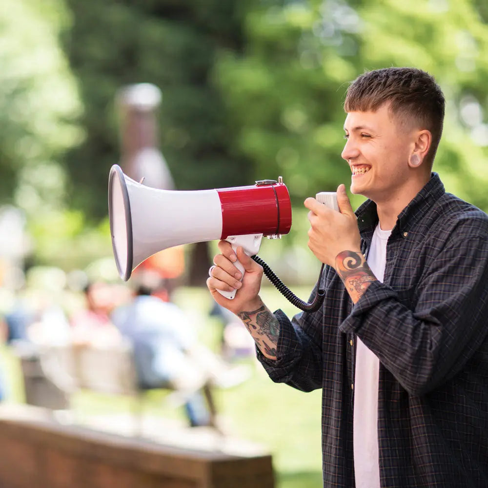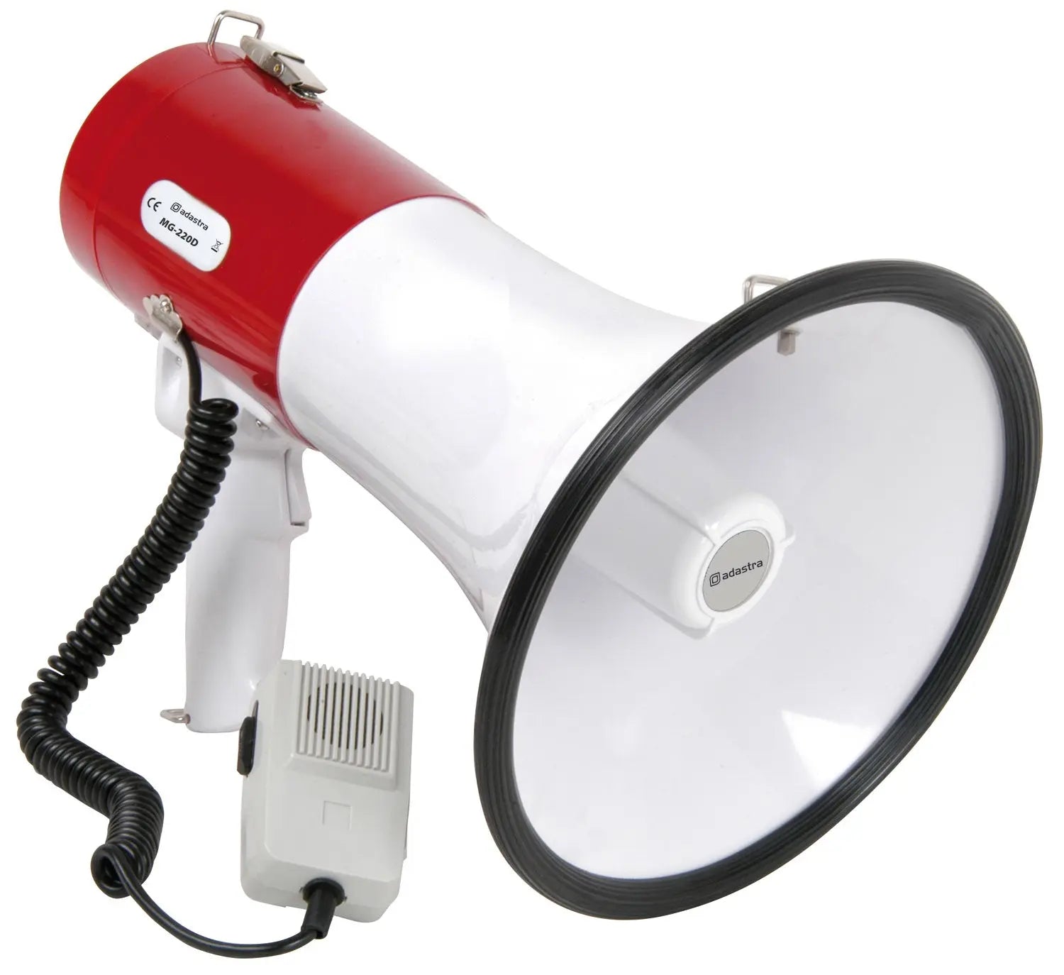 A powerful and durable pistol grip megaphone for outdoor voice reinforcement applications.Anti-feedback microphone which can be attached to the megaphone or handheld