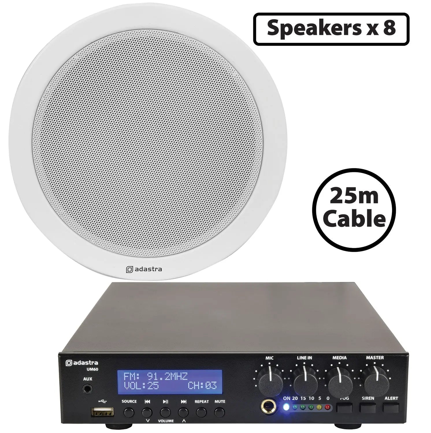 Adastra 8 x 6W Ceiling Speaker PA with 60W BT/USB Mixer-amp