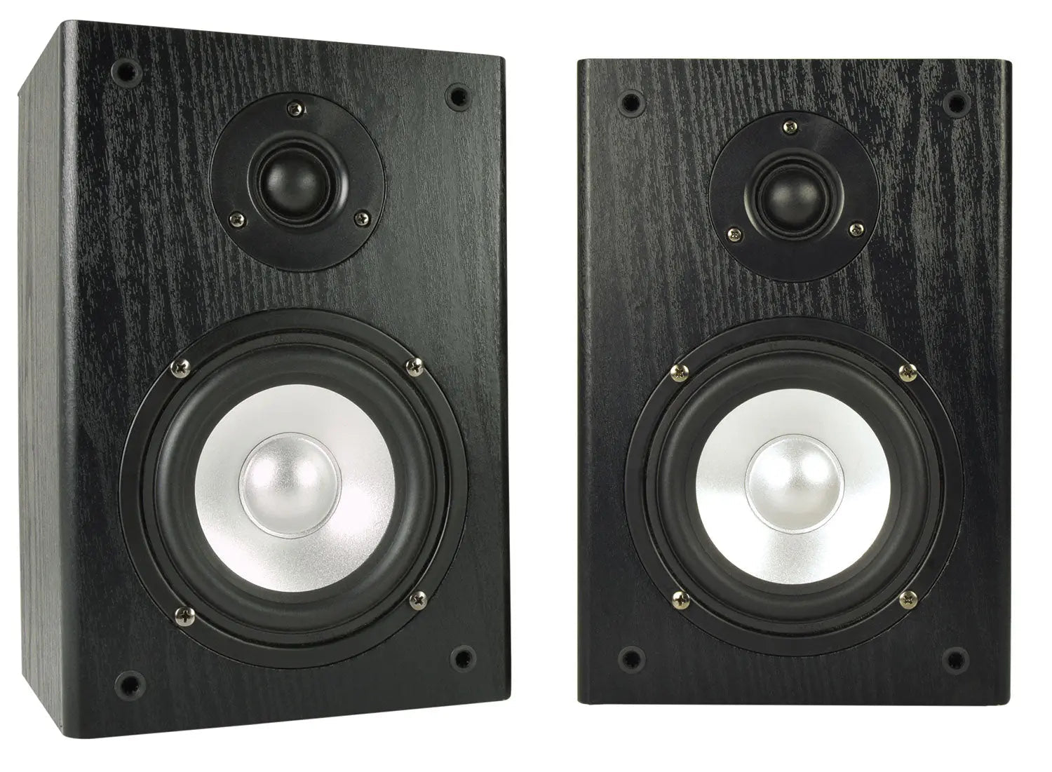 A pair of passive low impedance bookshelf speaker cabinets finished in black woodgrain vinyl with M6 mounting points at the rear. Each speaker provides maximum power conversion with most stereo amplifiers which can operate down to 4 Ohms, and is fitted with a 5.25" main driver and a 1" silk dome tweeter for balanced, full range output. A perfect match for Adastra and other low impedance amplifiers for background music, radio and voice announcements.4 Ohms impedance per speaker