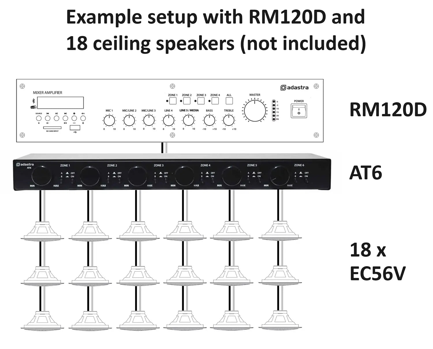Adastra AT6 Volume Attenuator + A/B Switcher 100V 6 x 30W