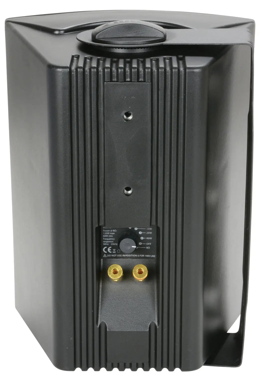 Industry standard 100V indoor speakers with ABS enclosures and a powder coated steel grille grille. Wall or ceiling surface mounting via the adjustable steel bracket. The trapezoidal design allows for the enclosures to be mounted neatly into corners or angled for directional coverage. Main drivers have high quality coated paper cones for full-sounding low and mid-range frequencies, ideal for music playback and clear voice announcements.2 way speaker system with crossover network