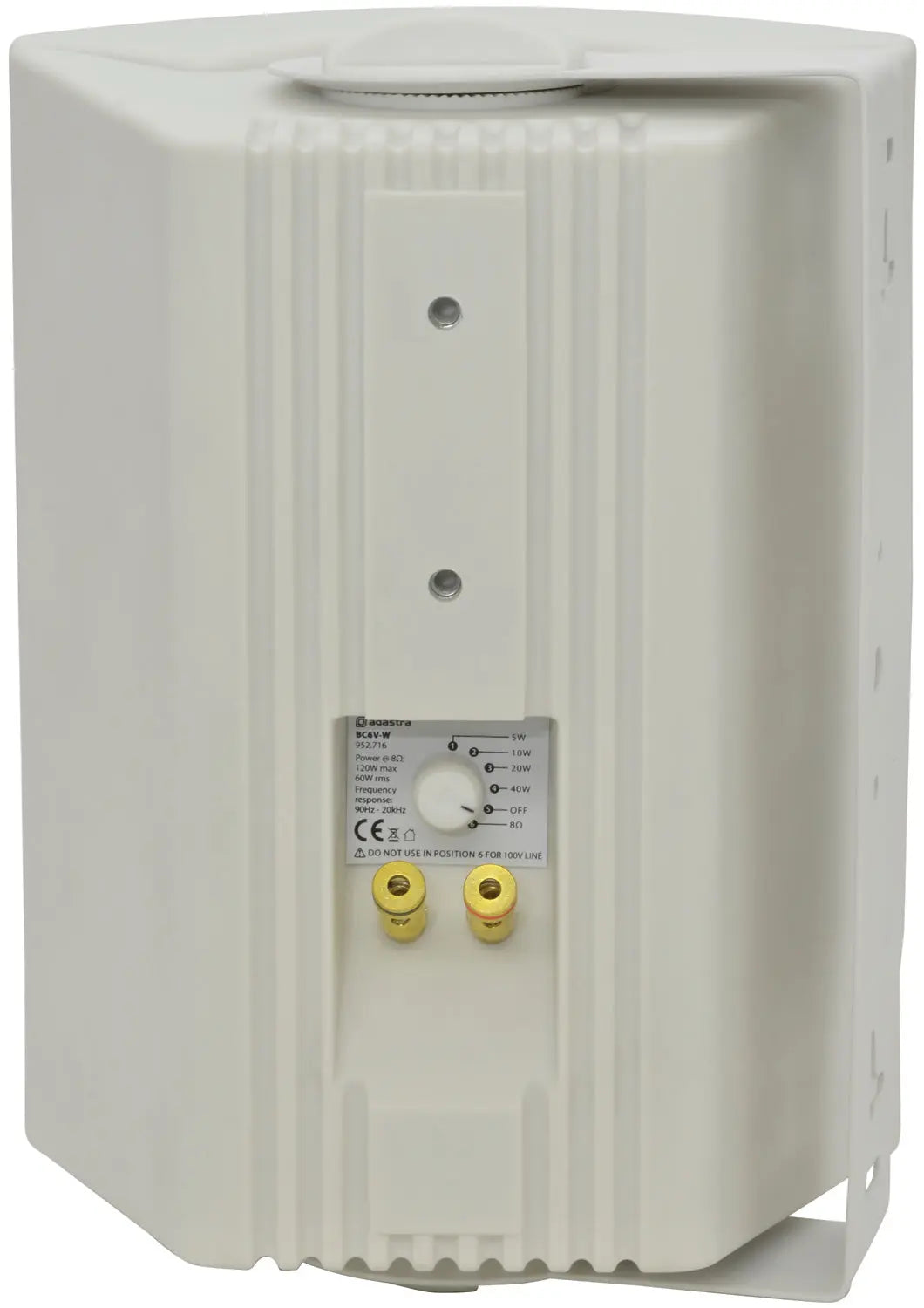 Industry standard 100V indoor speakers with ABS enclosures and a powder coated steel grille grille. Wall or ceiling surface mounting via the adjustable steel bracket. The trapezoidal design allows for the enclosures to be mounted neatly into corners or angled for directional coverage. Main drivers have high quality coated paper cones for full-sounding low and mid-range frequencies, ideal for music playback and clear voice announcements.2 way speaker system with crossover network