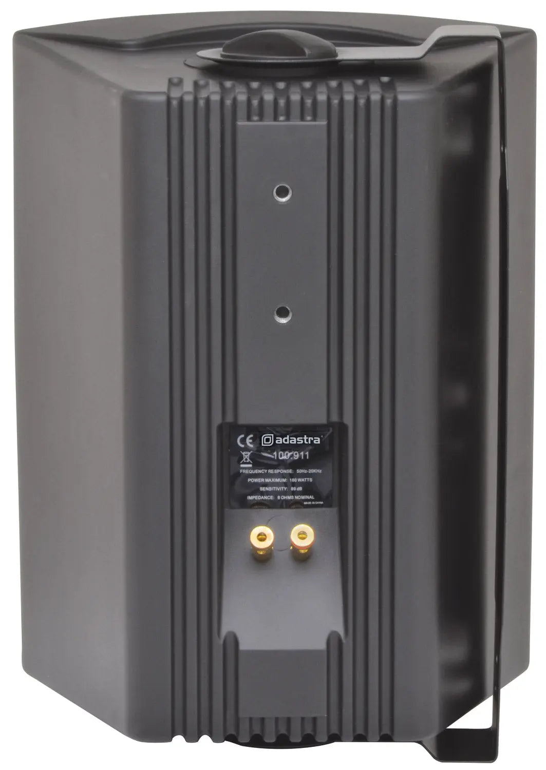 Industry standard indoor speakers with ABS enclosures and a powder coated steel grille. Wall or ceiling surface mounting via the adjustable steel bracket. Each with standard 8 Ohms impedance and supplied in pairs for connection from a stereo amplifier. Main drivers have high quality coated paper cones for full-sounding low and mid-range frequencies, ideal for music playback and clear voice announcements.2-way speakers