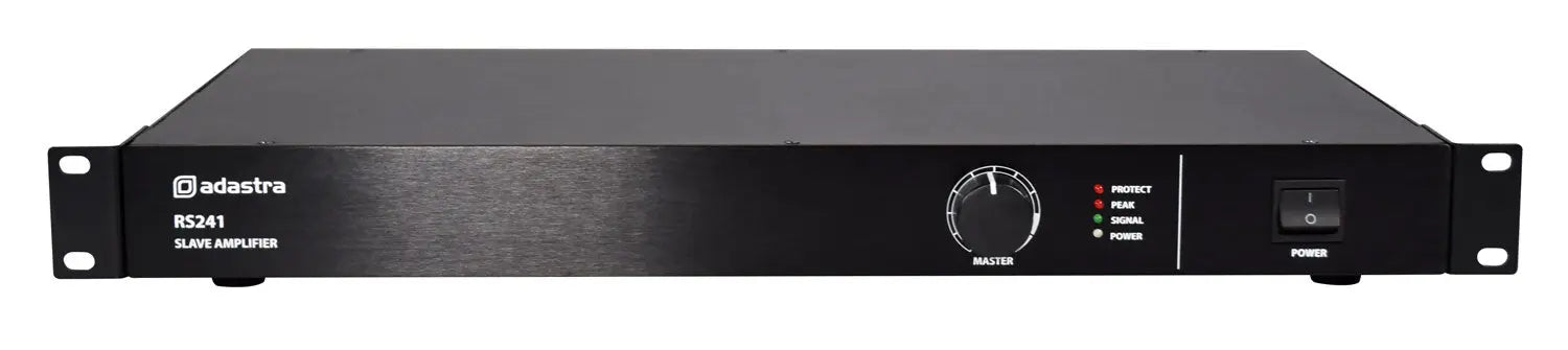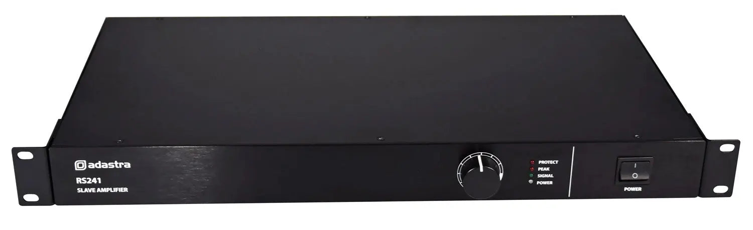 High power class-D 100V line slave amplifiers in a rack-mountable housing. Slave inputs accept standard line level audio from a mixer or RM series mixer amplifier. Slave outputs can be cascaded onto further RS slaves to build larger systems. All line level inputs are connectable via RCA sockets or hard-wired via removable screw terminals. A further removable screw terminal is provided for 100V input, which enables the RS series slave amplifier to extend an existing 100V installation by connecting directly to the 100V speaker feed, or indeed from a long distance 100V feed using standard double-insulated cable. A 24V terminal is provided for connection to a security or alert panel to mute the output if required during alarm triggering. Speaker outputs are either 100V or low impedance (switchable on RS121 and RS241) which is stable down to 2 Ohms, enabling multiple low impedance speakers to be connected if preferred. Designed to power medium to large installations from a mixer output or to expand existing systems.19" Rack-mountable 1U (120W, 240W) or 2U (360W, 480W)