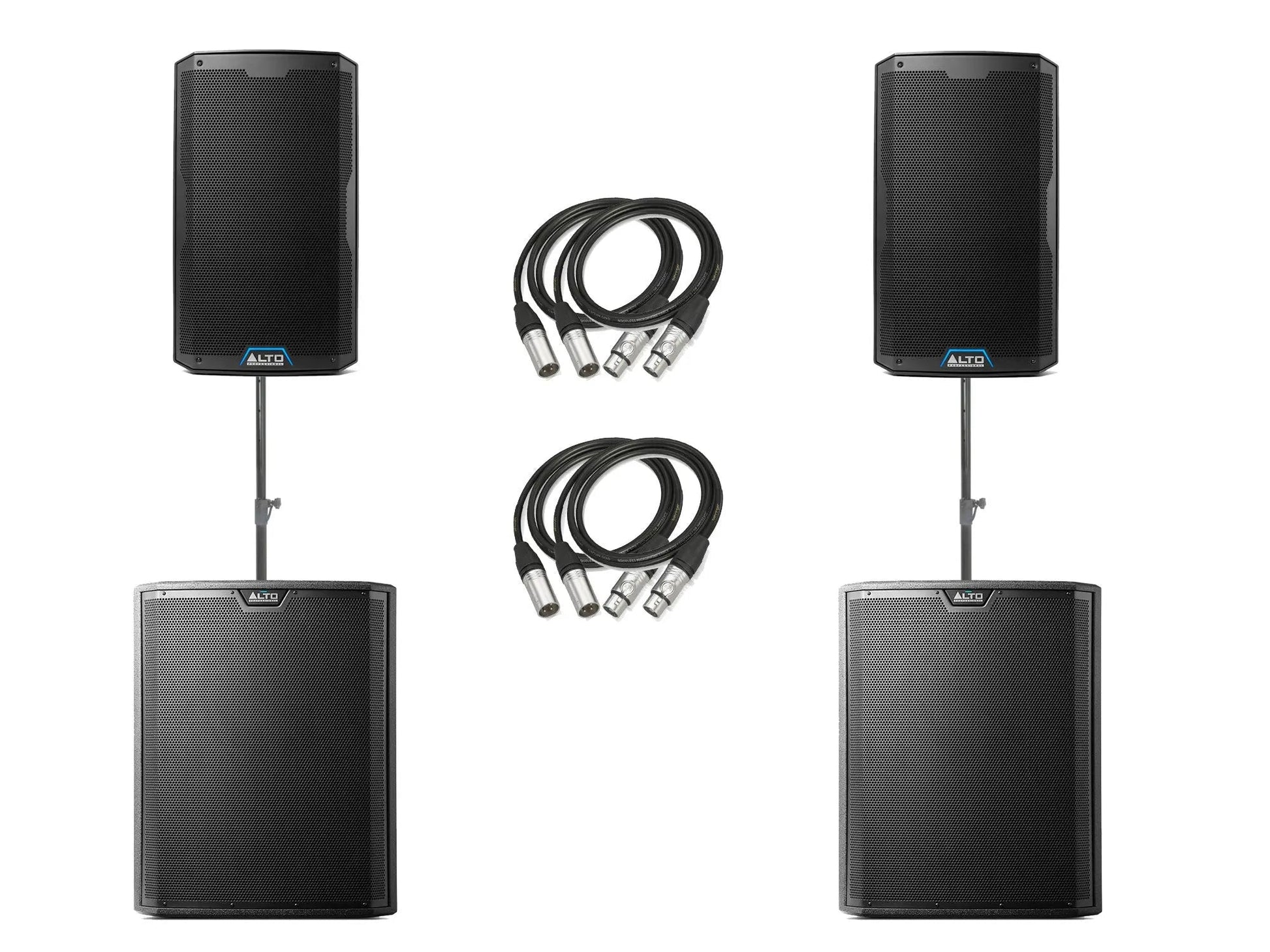 Elevate your large-scale events and performances with the Alto TS412 & TS18s PA Bundle 2, a robust and comprehensive sound reinforcement package designed for maximum impact. This powerful bundle features a pair of high-performance Alto TS412 active full-range loudspeakers combined with two commanding Alto TS18s active subwoofers, delivering an incredibly full-spectrum, thunderous audio experience. Complete with essential speaker poles and connecting XLR cables, this bundle offers exceptional power, versatile control, and rugged reliability, ensuring professional-grade sound for even the most demanding live sound applications and venues.