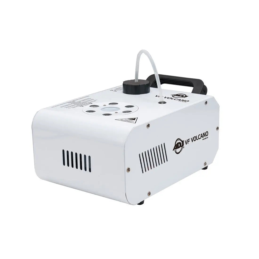 The ADJ VF Volcano Āis a compact and affordable vertical Fog Machine that mixes color into the fog from 6x 3-Watt RGB LEDs. ĀWith new advances in ADJs heater technology the VF Volcano produces a dry even blast of fog over 15 feet (4.5 meters) in the air. It has a special heating element design that uses an oil type transmission throughout the pipeline to prevent clogging. It is also equipped with a high performance Italian pump system for optimum output. ADJs Electronic Thermo Sensing (ETS) technology is on-board to maintain optimum heat levels with short warm-up time between fog blasts.Ā The VF Volcano should only be used in a position so fog is shooting upright. The ADJ VFV-WR wireless remote comes included with the VF Volcano.