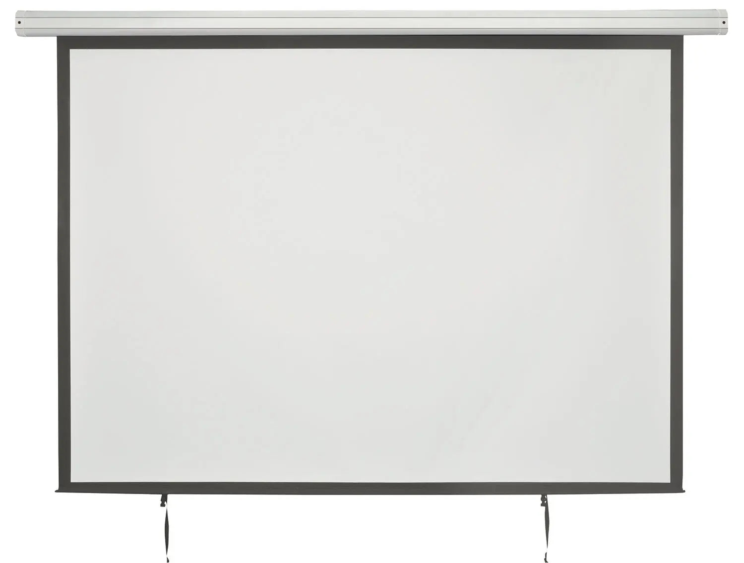 A range of large format projector screens with built-in electric motor controlled via the in-line switch or remote control. The screen is housed in a white steel case with mounting brackets on either end, allowing installation onto ceilings or walls. The screen itself has a weighted bottom bar to prevent the screen jamming in the case or curling. Various sizes available for all types of installation such as classrooms, auditoriums or places of worship.Available in 4:3 and 16:9 formats