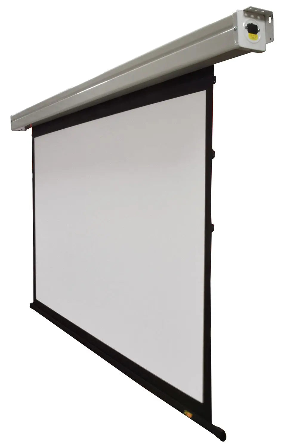 Professional quality electric screens fitted with an elastic tightening system designed to balance the surface tension making the viewing area smooth and wrinkle free. Housed in a rugged iron casing and fitted with a reliable synchronous motor, the soft white PVC screen surface with black border provides the perfect projection area for high definition and 4K images. Fitted with sturdy top/side mounting brackets making installation a breeze and supplied with a sleek RF remote providing total control from anywhere in the room.Soft white PVC screen material with black border which enhances the definition of the projected image