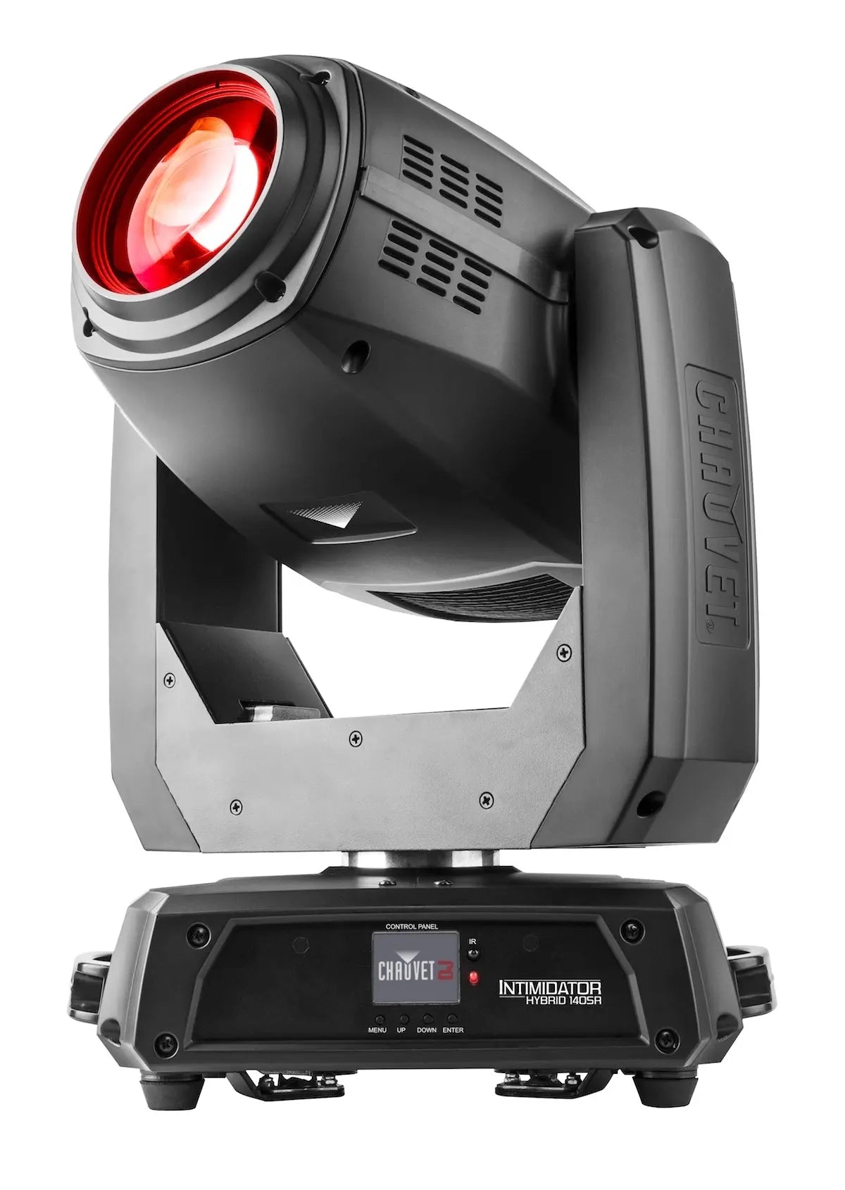Intimidator Hybrid 140SR is powerful all-in-one moving head fixture that morphs from SPOT to BEAM to WASH effortlessly. Fitted with an intense 140 W discharge light engine and motorized focus it projects crisp beams and gobos at almost any distance. Two overlapping independently controlled prisms create dynamic beam effects. Dual gobo wheels allow for gobo morphing and amazing mid-air projections. The motorized zoom works in beam spot and wash modes for ultimate light control. Highlights True hybrid moving head fitted with an intense 140 W discharge light engine All-in-one light fixture morphs from SPOT to BEAM to WASH effortlessly Dual overlapping prisms with independent control multiply the beam dynamics Dual gobo wheels allow for gobo morphing and amazing mid-air projections Motorized zoom works in beam spot and wash modes for ultimate light control Unique Ā-turn hanging bracket allows for single or dual clamp mounting options Emit crisp projections at almost any distance using the motorized focus Glass optics ensure crisp beams and gobos at all times Flexible menu option accepts Osram 132 W lamps if needed Full-color display with IRC-6 compatibility totem mode and onboard memory for storing a scene On-board power linking saves time running extension cords Fits best in the CHS-50 VIP Gear Bag