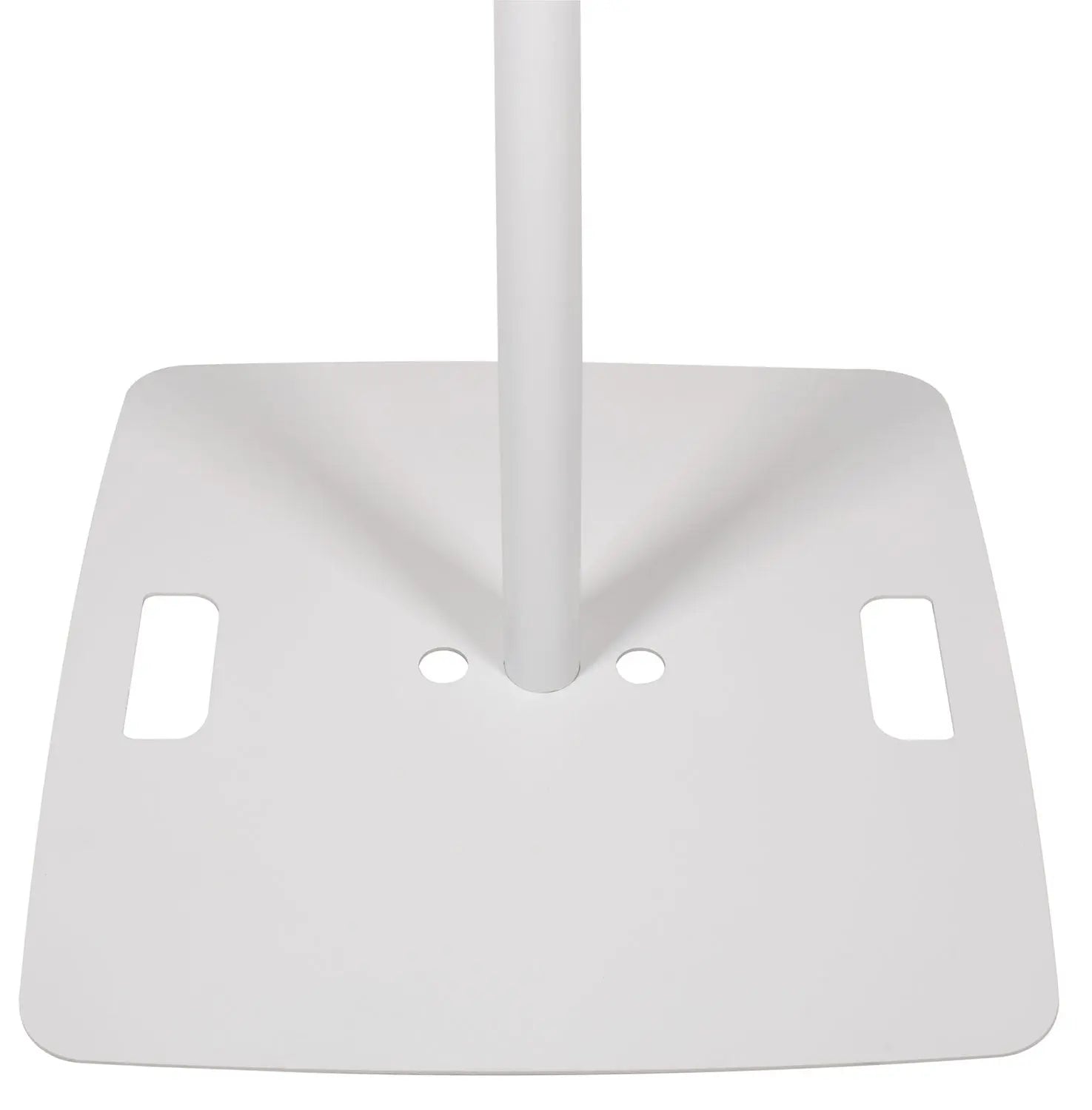This professional speaker stand from QTX has a sleek design and features a large steel square base ensuring maximum stability and adjustable height of up to 182cm. The 48x48cm base plate has four rubber feet to protect flooring, two insert holes to tidy cables underneath the stand and integrated carry handles for easy transportation. The stand is assembled using a 10mm bolt which screws upwards from under the base plate into mounting pole. Adjust the height of the stand using the hand fastener and safety pin. This stand is recommended for use with a speaker or single lighting effect of up to 15kg.Large steel square base