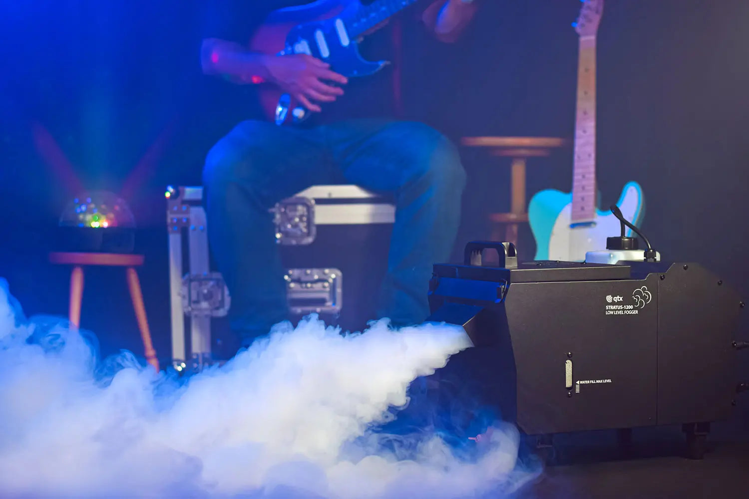 Small form factor, portable effect machine producing "dry ice" type low fog effects without the use of carbon dioxide or ice. New technology delivers a ground-hugging, flowing mist from standard fog fluid and water, perfect for stages, theatres and themed events. The main unit has a removable fluid tank and easy access water reservoir with drain tap and can be operated by a wired digital control panel, seperate RF remote or 2 channel DMX connection if required.Produces an impressive, ground hugging mist effect