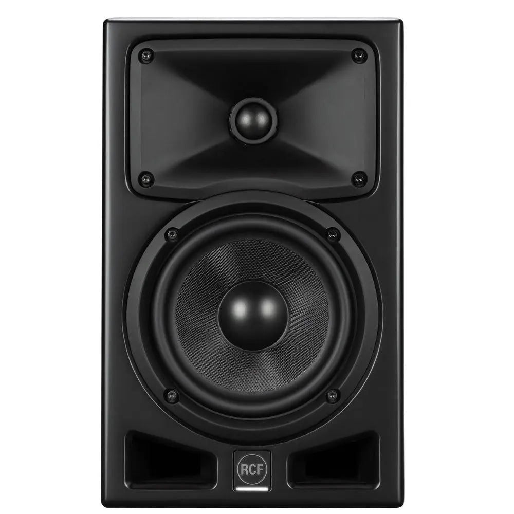 Ā AYRA PRO6 studio monitor works perfectly in any listening environment whether large or small production facilities with absolute clarity. It delivers accurate monitoring and provides the engineer or producer with a neutral tool to analyze recordings and optimize the mix; for this reason we call it PRO. Featuring a dedicated powerful internal DSP that optimizes frequency response and dynamics together with the exclusive RCF FiRPHASE processing and selected components the AYRA PRO is the first Studio Monitor in its class to boast an outstanding 0Ā phase response. 45 20 kHz Frequency Response 0Ā Phase Response 80W + 40W Class-D Amplifiers 6.5 Composite Fiberglass Woofer 1 ferrofluid cooled Soft Dome tweeter RCF Precision Waveguide DSP Processing with FiRPHASE Low distortion frontal Vented Ports