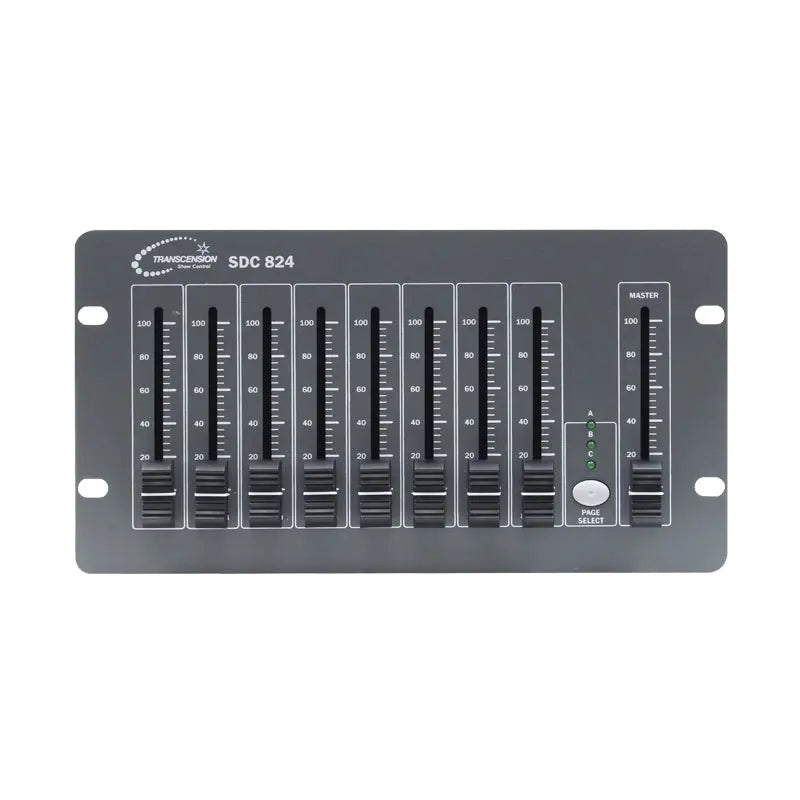 24 channel DMX controller featuring three banks of 8 channels split over 3 pages. This portable unit is easy-to-operate making it an ideal desk for use on dry hire rental and simple events. Ā 8 individual channel faders and 1 master fader 24 DMX channels Compact design and simple operation Can also be powered by internal PP3 9V battery